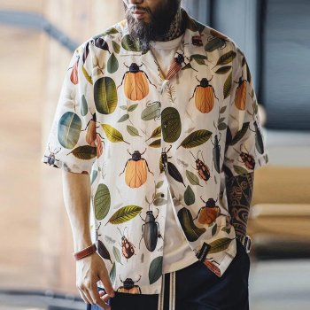 Men’s Vintage Inkjet Print Cuban Collar Shirt
