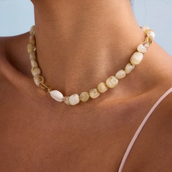 18K Gold Irregular Natural Stone Shell Beaded Choker Necklace for Women