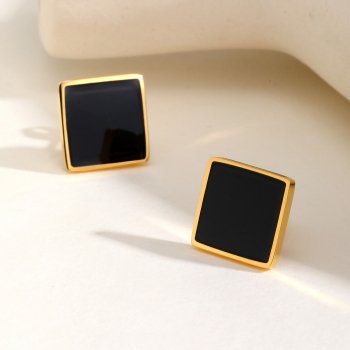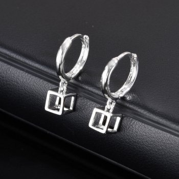 Men’s 3D Geometric Square Hoop Earrings – Waterproof Stainless Steel Dangle