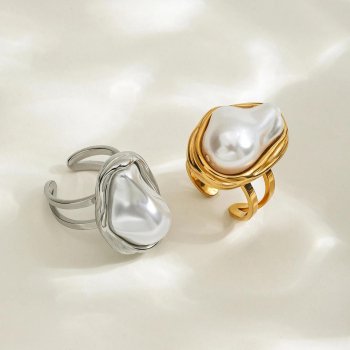 Elegant Baroque Pearl Open Ring with 18K Gold Plating for Women