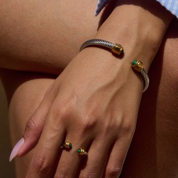 Trendy Green Malachite Inlaid 18K Gold-Plated Stainless Steel Bracelet